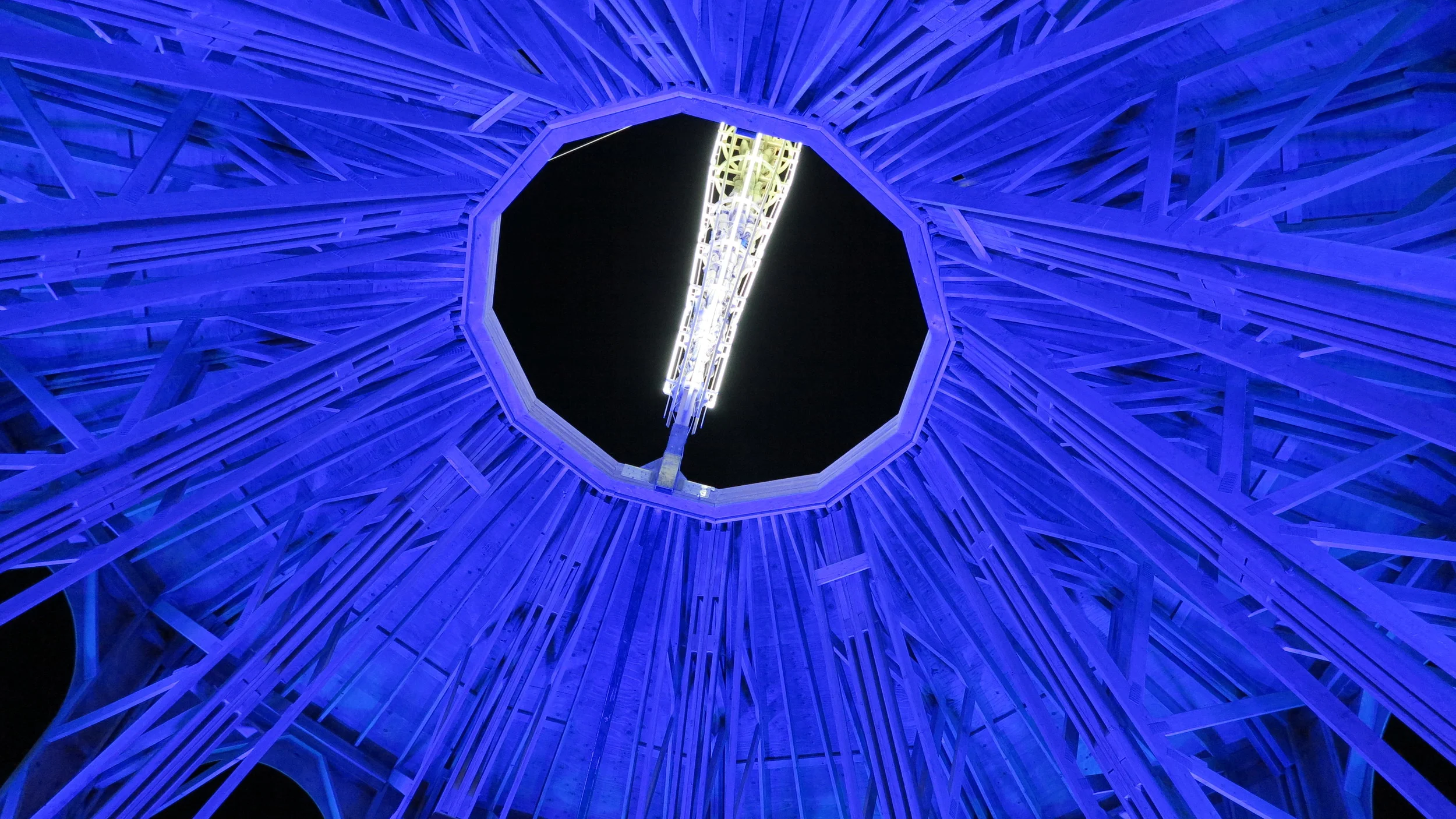 The Temple of Juno burning was important for us this time, especially for James, who needed to pay his respects to his friend Bells. It was the exact opposite to The Man burning. Everyone sat in silence. A guy shining a laser got shouted at to turn it off. This time there were no thermal explosions or fireworks, The Temple was lit by torches passed from bearer to bearer. Many people gathered there were lost in thoughts of absent friends. As the Temple burned so did all the pictures, words and tokens people had left. I watched the ashes fly off as glowing cinders into the night sky towards the stars.