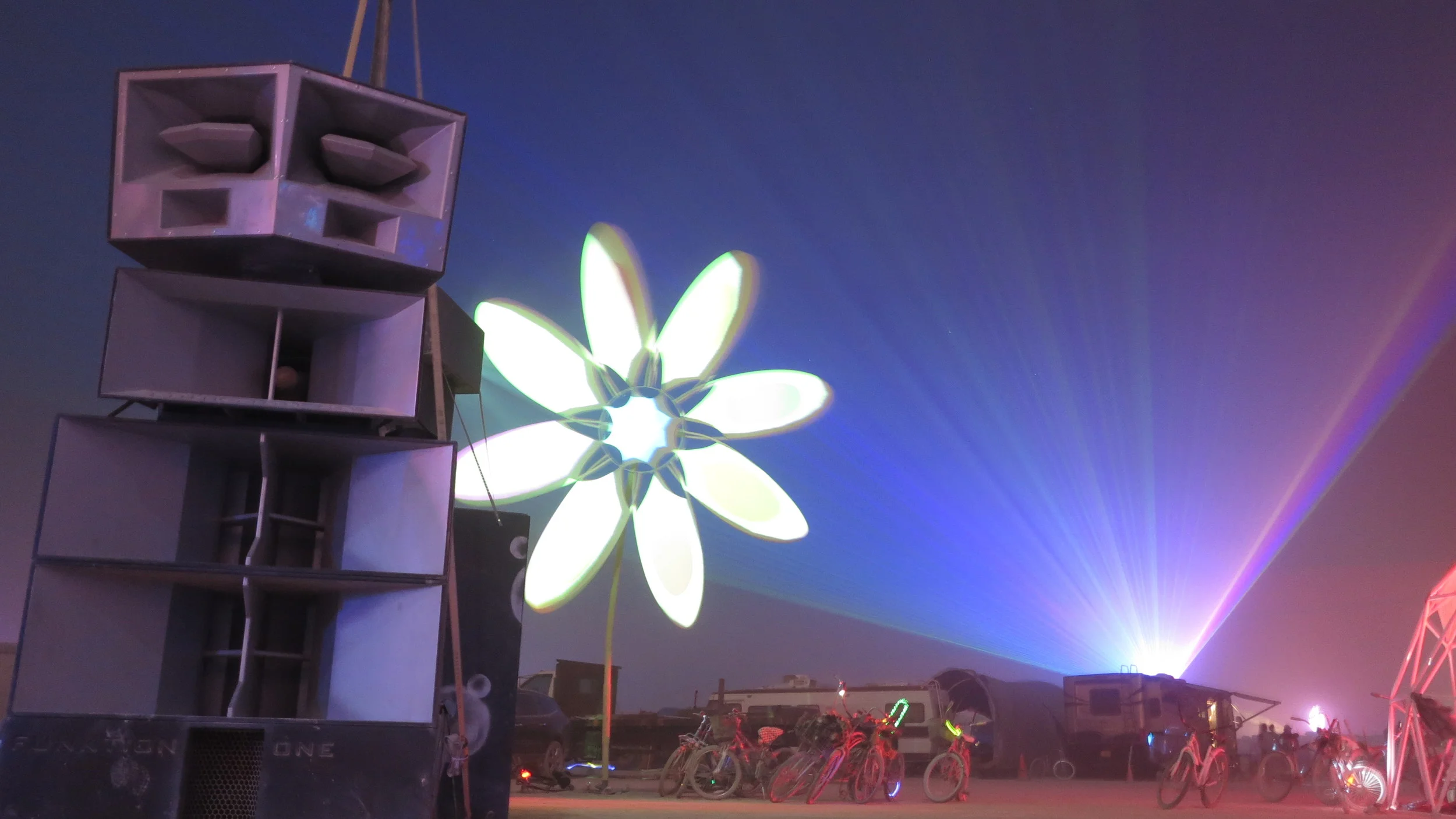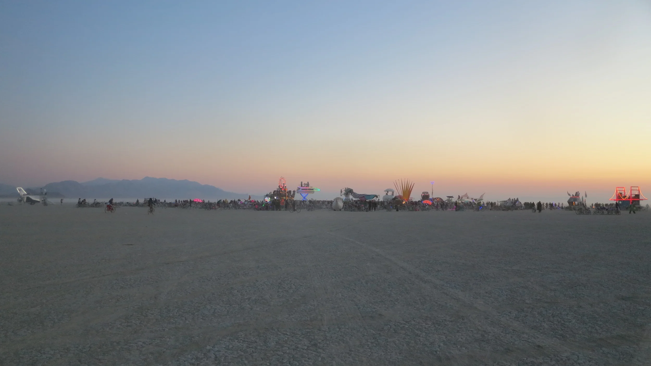 We realised this was a proper newbie error and were now without bikes just about as far away as you could possibly be from our camp or Robot Heart. So it was walking for us while everyone else powered off on bikes. Robot Heart parked up Deep Playa. Deep Playa is the mythical twilight zone between the city and the trash fence, the true city limits of the event, basically it's a long way out (more on that later).