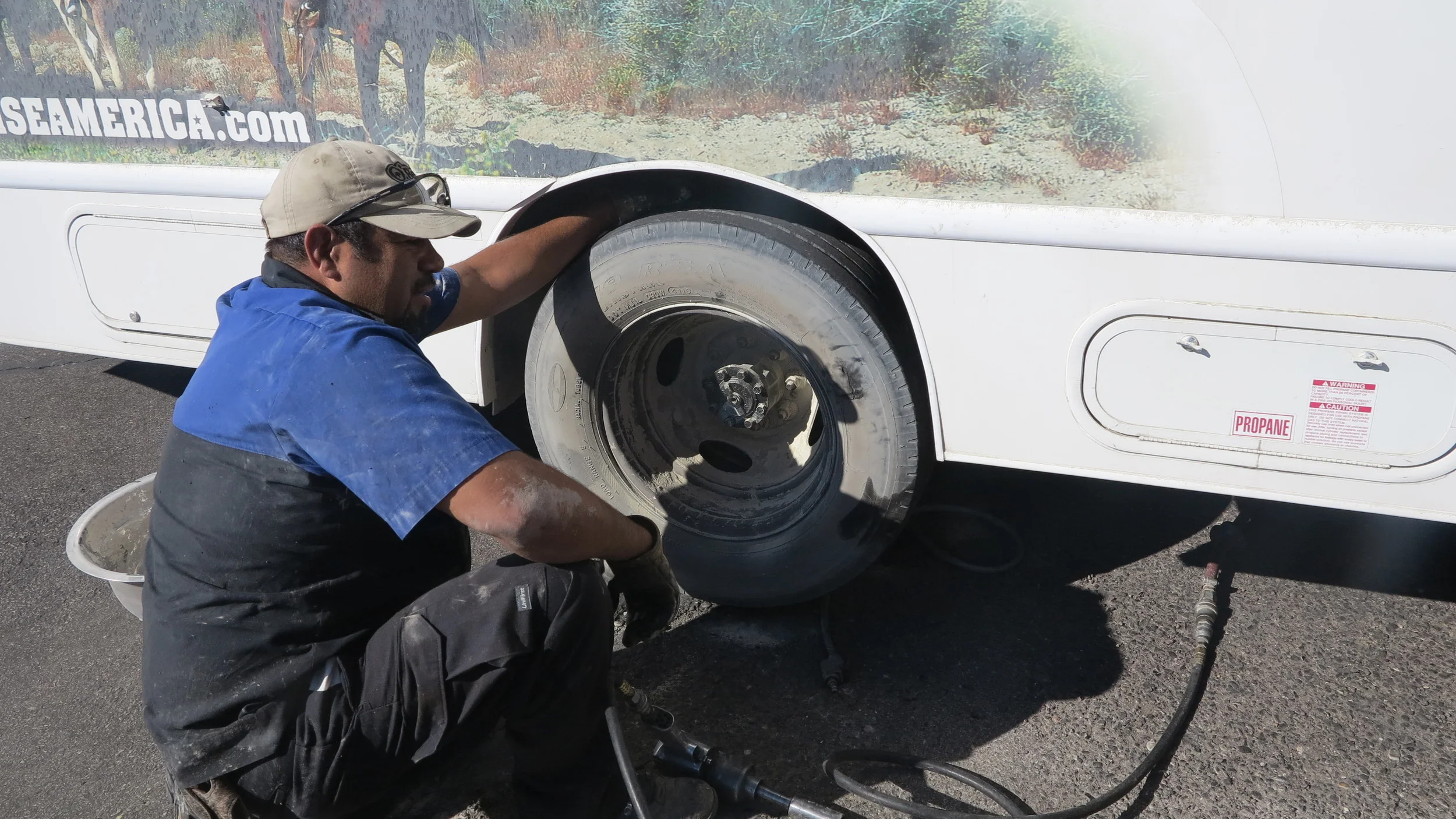I'm a natural optimist. In my mind I always imagine things to be far better than they turn out to be. In my mind I'd imagined our RV to be a rock star's tour bus with spacious living quarters and a pimped out cab. The reality was our Cruise America RV was more like Walt and Jesse's meth lab RV from Breaking Bad. It was even more dismal after living in the luxury the casinos offer for peanuts in Vegas. I was suddenly hit by the reality that I was going to be living in there in the middle of a desert with a guy I'd never met (Adam Carter) and an old mate I hadn't seen for years. As soon as we drove off, the vehicle shook like it was about to fall apart. It was only after crossing the desert 10 hours later than we found out that not one but three tyres needed replacing.